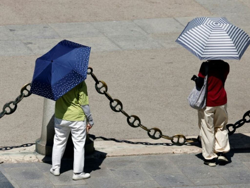 | Des gens s'abritent du soleil le 23 juillet à Madrid (Espagne), en pleine vague de chaleur. |