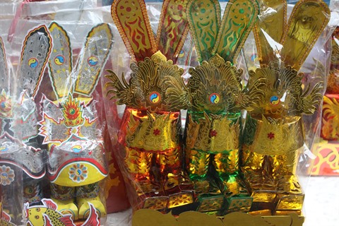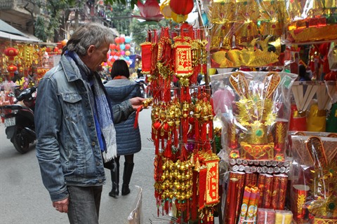 | Un touriste français se montre enthousiaste devant les objets votifs pour le Têt Tao Quân. |