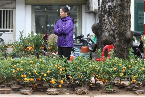 | Des minis kumquats vendus dans la rue Phùng Hung, à côté de la rue Hàng Ma. |