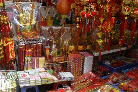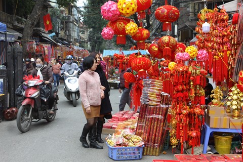 | Hàng Ma est teintée par la couleur rouge des lanternes, des sentences, des li xi… |