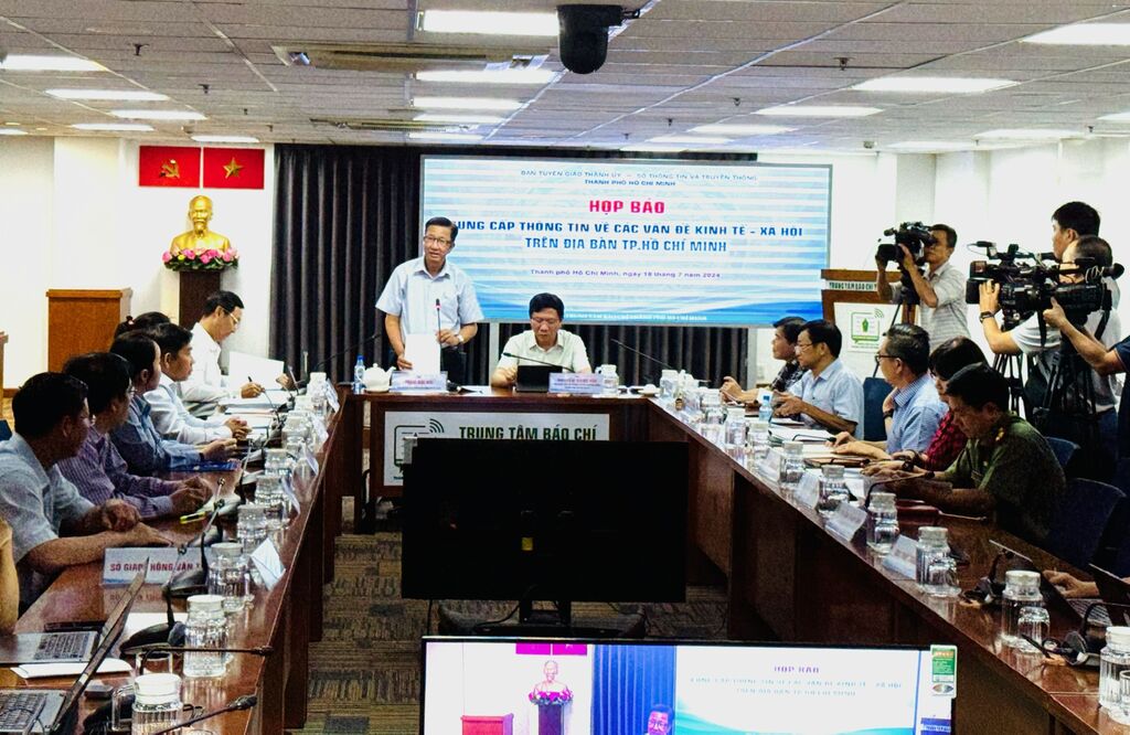 | Conférence de presse annonçant le 2e dialogue d'amitié de Hô Chi Minh-Ville et le 5e Forum économique de Hô Chi Minh-Ville en 2024, le 18 juillet dans la mégapole du Sud. |