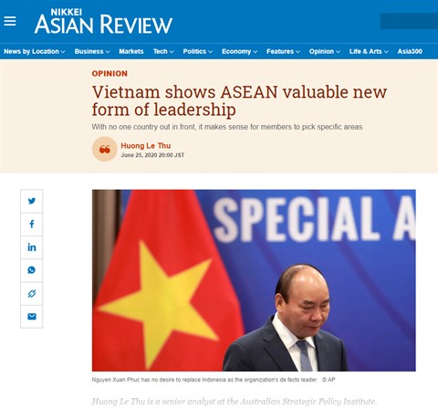 Nikkei Review (Japon) note le rôle émergent du Vietnam dans un article intitulé Le Vietnam met en lumière les nouvelles valeurs de l’ASEAN. Alors qu’il est l’un des derniers à avoir adhéré à l’ASEAN, le Vietnam se révèle être un fervent défenseur des problèmes régionaux et internationaux, qu’il s’agisse des conflits en Mer Orientale ou de la guerre commerciale entre les grandes puissances.