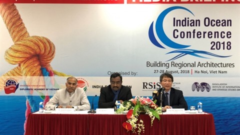 | La conférence de presse sur le 3e colloque sur l’Océan indien, le 21 août à Hanoï. |