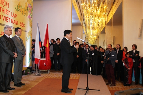 | L'ambassadeur du Vietnam en République tchèque, Truong Manh Son, prend la parole lors de la célébration du 65e anniversaire de l'établissement des relations diplomatiques entre les deux pays, le 3 févier à Prague. |