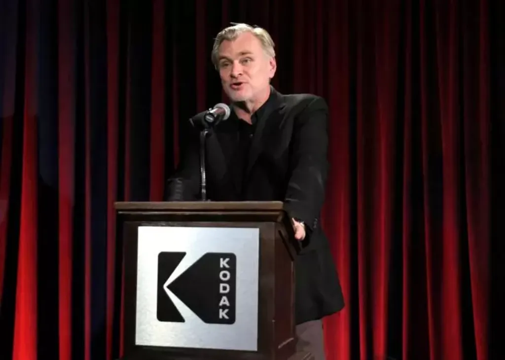 | Christopher Nolan prend la parole sur scène lors de la cérémonie des Kodak Film Awards, au ASC Clubhouse à Los Angeles, le 2 mars. |