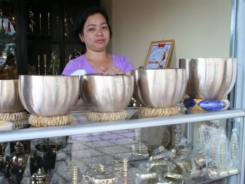 | Des produits en bronze présentés au 7e festival des métiers traditionnels de Huê 2017. |