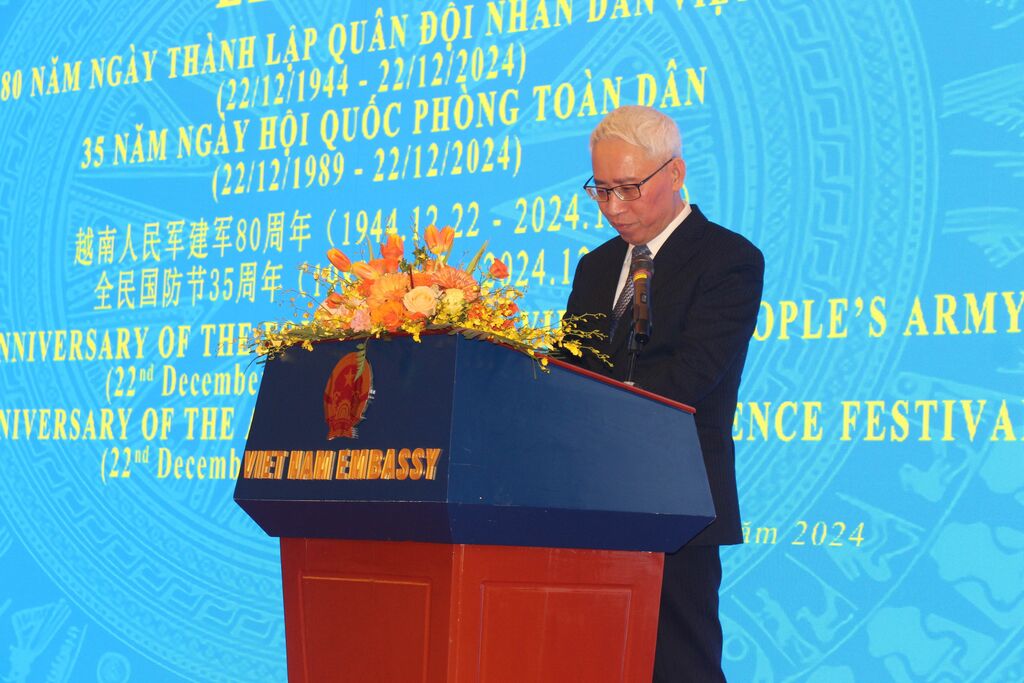 Lors de la cérémonie, l’ambassadeur vietnamien en Chine, Pham Sao Mai, a souligné que la défense nationale du Vietnam était une défense populaire, pacifique, d'autodéfense, que le Parti et l'État du Vietnam prônaient un développement socio-économique associé à la défense, à la sécurité et à la diplomatie, et une coordination étroite des activités de défense et de sécurité et de diplomatie.