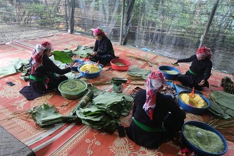 | Confectionner les "bánh chưng gù" constitue un véritable métier traditionnel pour les femmes de l'ethnie Tày à Van Bàn. |