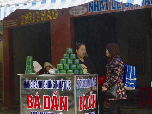 | La rue Nhât Lê (ville de Huê, Centre) regroupe beaucoup de boutiques de banh chung. |