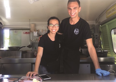 La vie en rose, ils l’avaient déjà. Il leur fallait donc maintenant s’adapter à la vie en vert. Pourquoi cette insistance? Parce que leur camion est d’un très joli vert, parce que dans la cuisine vietnamienne, le vert domine souvent et qu’enfin, bien évidemment, le vert, c’est la protection de l’environnement et c’est une tendance évidemment très développée en Europe et particulièrement à Malte. Ainsi, leur camion de restauration rapide est totalement autonome et fonctionne grâce à l’énergie solaire. Quatre panneaux solaires sont montés sur le toit et permettent de faire fonctionner les frigos et la cuisinière.