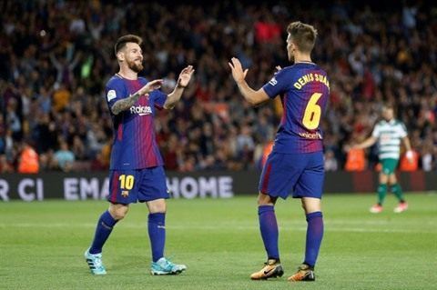 Intenable, Messi a marqué sur un penalty généreux (21e), un tir subtil au ras du poteau (59e), un face-à-face gagné avec le gardien (62e) et un plat du pied imparable (87e), portant son bilan en Liga à déjà neuf buts. Paulinho, très bon, a marqué de la tête (38e) et Denis Suarez d'une frappe à angle fermé (53e), avant que Sergi Enrich ne sauve l'honneur (57e).