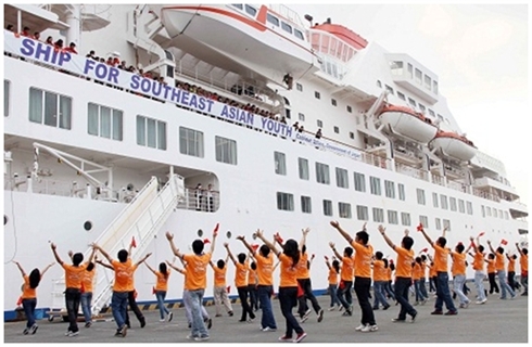 | Les jeunes délégués du programme "Bateau de la jeunesse d'Asie du Sud-Est" (SSEAYP 2013). |
