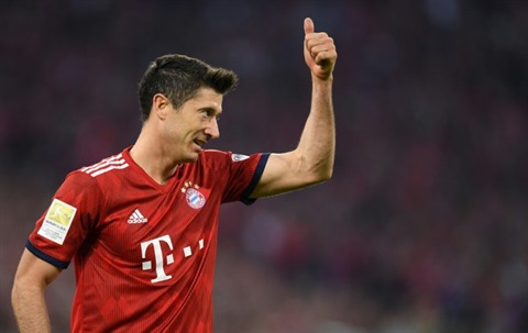 | L'attaquant polonais du Bayern Robert Lewandowski encore buteur contre Dortmund, le 6 avril à Munich. |