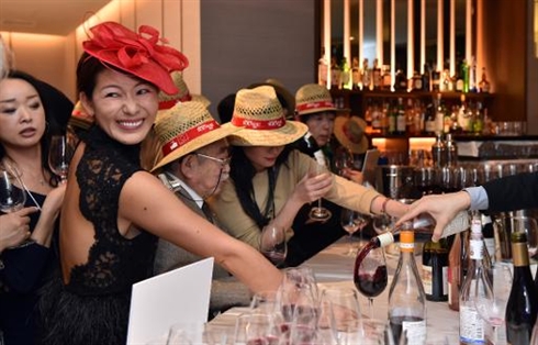 | Des Japonais goûtent la cuvée 2014 du "Beaujolais nouveau", le 19 novembre à Tokyo. |