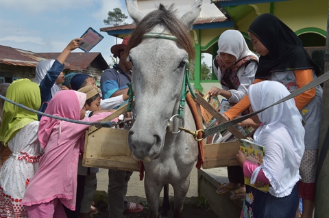 M. Sururi, qui gagne sa vie en toilettant des chevaux, a trouvé là un moyen unique d’encourager la lecture. Avec Luna et une centaine de livres reçus d’un ami, il a commencé à tester sa bibliothèque mobile dans son district, sans savoir si son idée aurait du succès.