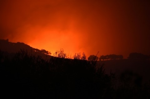 | Le halo d'un incendie approchant la crête d'une colline près de Sonoma en Californie, le 11 octobre. |