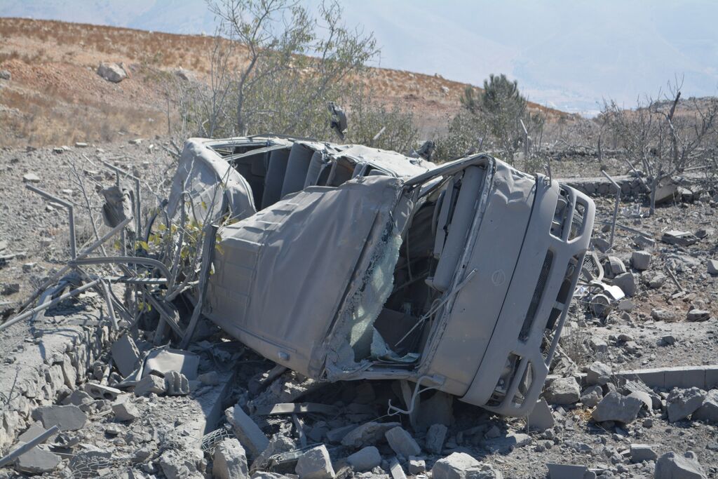 | Une voiture détruite après une frappe aérienne israélienne sur Meidoun, au Liban, le 10 octobre dernier. |