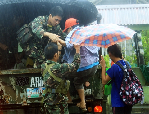 "Les inondations ont commencé à refluer mais les gens sont toujours sur les toits. De nombreuses maisons ont été endommagées. On va se rendre dans les zones concernées avec les canots des gardes-côtes", a-t-il déclaré à la radio DZMM.