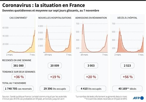 Le nombre de nouvelles contaminations n'a pas été communiqué ce week-end, après un embouteillage informatique provoqué par l'afflux de tests, qui avait rendu leur recensement incomplet depuis plusieurs jours. Des données corrigées seront publiées lundi 9 novembre.
