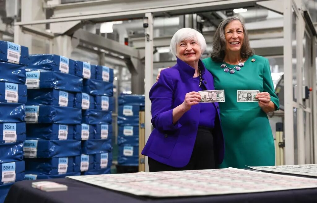 "C'est la première fois que la signature d'une femme secrétaire au Trésor figurera sur les billets de banque américains et la première fois que les signatures de deux femmes apparaîtront sur notre monnaie", a déclaré Janet Yellen, lors d'un discours dans l'un des deux seuls sites aux États-Unis où sont imprimés les billets verts, à Fort Worth (Texas).