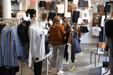 | Des clientes dans un magasin de vêtements, le jour de la réouverture des commerces non essentiels, le 28 novembre à Paris. |