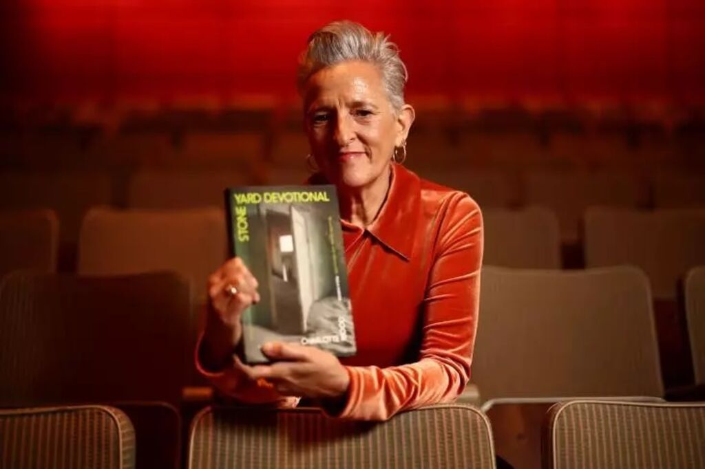 | L'écrivaine australienne présélectionnée pour le Booker Prize 2024 Charlotte Wood, pose avec son livre "Stone Yard Devotional" au Southbank Centre, à Londres, le 11 novembre. |