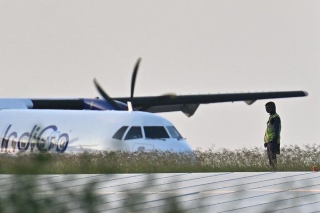 | Un avion de la compagnie indienne Indigo à l'aéroport Kempegowda de Bengalore. |