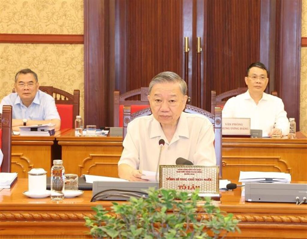 | Le secrétaire général du Parti et président de la République, Tô Lâm (centre), lors de la réunion, le 13 septembre. |