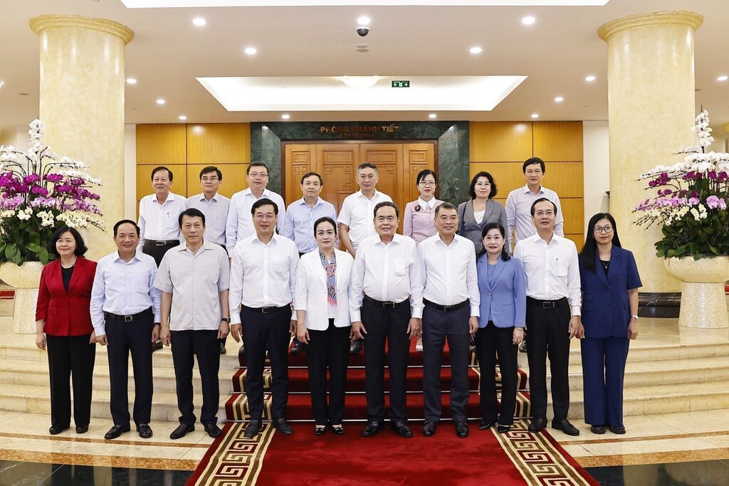 | Le président de l'Assemblée nationale, Trân Thanh Mân, avec la permanence du Comité provincial du Parti de Dông Thap. |
