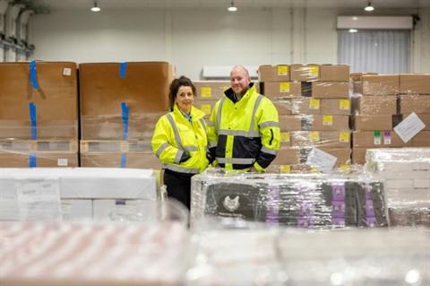 À une quarantaine de kilomètres de là, dans les locaux réfrigérés de Derry Transport, un ballet de chariots élévateurs s'anime, chargeant méthodiquement 2.000 palettes de produits alimentaires dans des camions en partance vers des centres de distribution dans l'île d'Irlande.