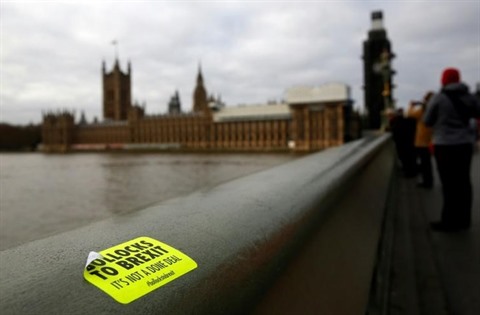 | Un autocollant anti-Brexit est collé sur la rambarde de Westminster Bridge, le 2 janvier 2019. |