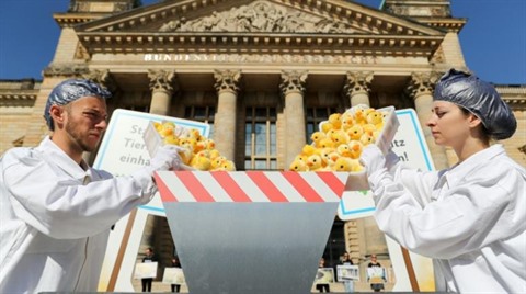 En Allemagne, environ 45 millions de poussins mâles sont systématiquement tués chaque année peu après leur éclosion parce qu'ils ne pondent pas d'oeufs. En outre, étant moins gros et donc moins fournis en viande, ils sont jugés trop chers à élever et peu rentables.
