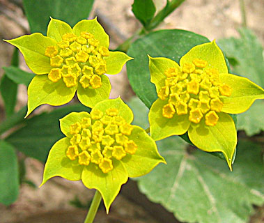 Le buplèvre est une plante vivace, à feuilles en forme de faucille, à petites fleurs jaunes en grappes.