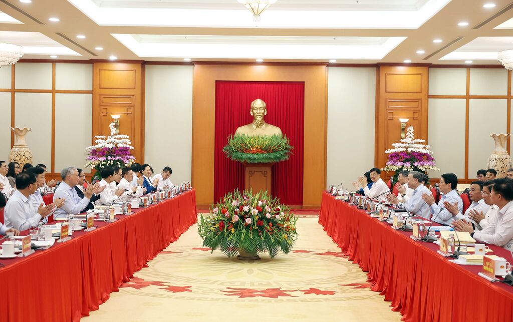Le chef du Parti a souligné la nécessité d'accélérer le perfectionnement institutionnel lié à l'édification d'un État de droit socialiste, intègre et au service du peuple. Il a insisté sur l'amélioration du cadre légal, notamment en matière d'investissement, de foncier et de planification, afin de libérer les forces productives et mobiliser toutes les ressources pour le développement. Il a appelé à encourager la participation du secteur privé dans les projets d'infrastructures stratégiques et à mettre en œuvre efficacement le centre financier international, les zones de libre-échange et de nouveaux modèles économiques.