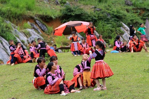 | Des femmes et des filles H'mông en tenue traditionnelle. |