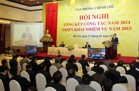 | Conférence du cabinet du gouvernement pour faire le bilan de l’année 2014 et arrêter les tâches de 2015, le 15 janvier à Hanoi. Photo: Duc Tam/VNA/CVN |