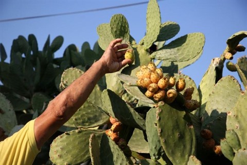 | Récolte des figues de barbarie près de Naplouse, en Cisjordanie, en août 2017. |