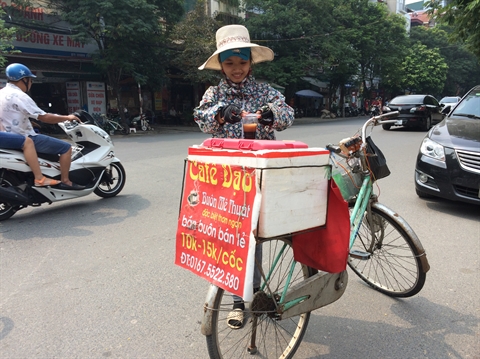 | Une vendeuse de café ambulant à Hanoi. |