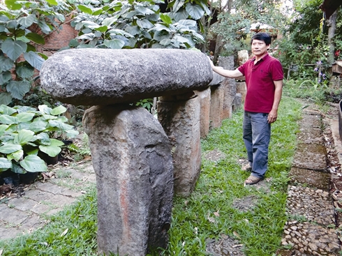 Dans son jardin, M. Thành a exposé de nombreux objets en pierre de diverses formes : coquillages, instruments, statues... En 2009, après avoir visité ce café, une mission du Musée de la nature du Vietnam, conduite par le Docteur Pham Van Luc, a estimé que c’étaient des objets millénaires du Tây Nguyên. Un an plus tard, une nouvelle mission du même musée, conduite cette fois par le Docteur Nguyên Huu Hùng, a conclu que certains objets de la collection dataient de 175 à 191 millions d’années et d’autres de 154 à 170 millions d’années.