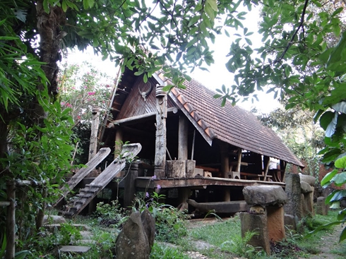 Au début, le jardin était décoré de blocs de pierre et de racines de grands arbres. De longs voyages, il a ramené des centaines de pierres et des racines. Sa passion, il l’a partagée avec ses voisins. Ces derniers lui vendaient des objets trouvés en forêt ou sur les brûlis. Thành a construit dans son jardin une grande maison modestement meublée et décorée avec divers objets : lits, gongs, anciennes jarres d’alcool, canoës, cloche en pierre, vieilles marmites et tasses. Puis, un jour, il ouvre un café qu’il baptise Chuông da (Cloche en pierre).