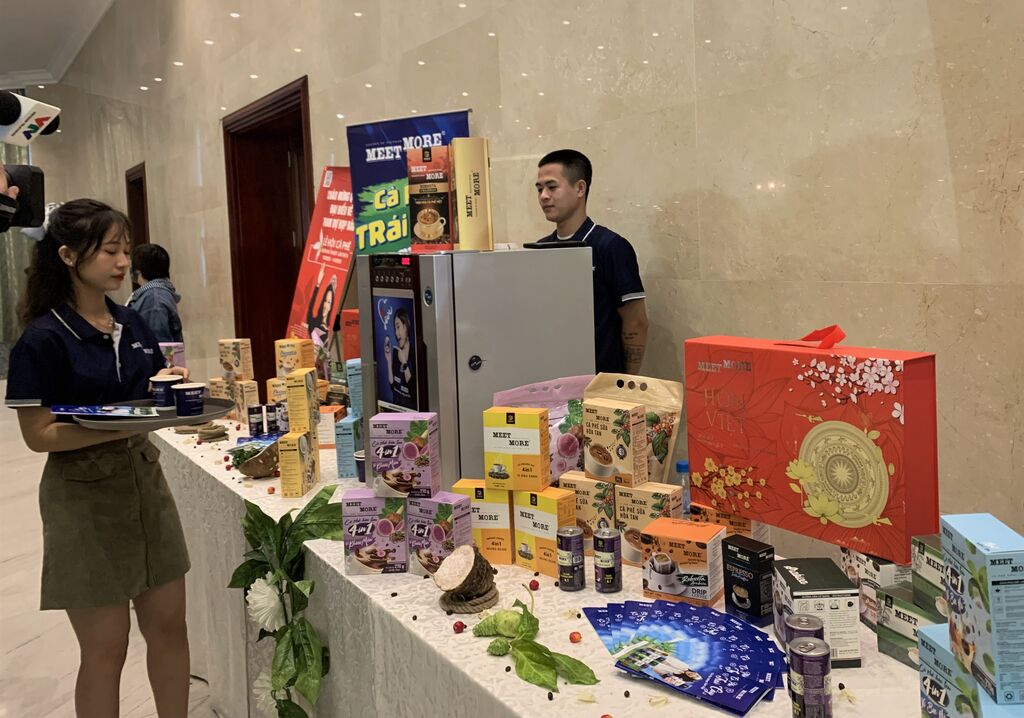 | De nombreux produits de Dak Lak sont exposés dans le cadre du point presse. |