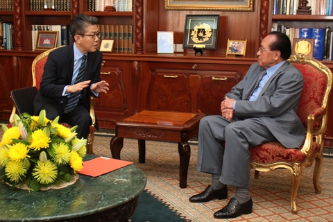 | Rencontre entre Hor Namhong (droite) et Kim Hong-kyun, le 14 octobre à Phnom Penh. |