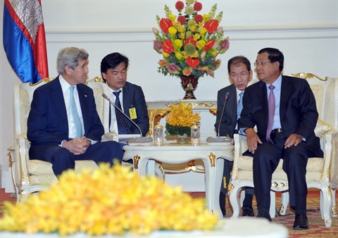John Kerry a affirmé que sa visite au Cambodge visait à préparer le Sommet entre les États-Unis et l'ASEAN prévu à Sunnylands, en Californie. Selon lui, les investisseurs américains considèrent le Cambodge comme une destination potentielle.