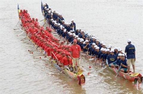 | Course de pirogue au Cambodge. |