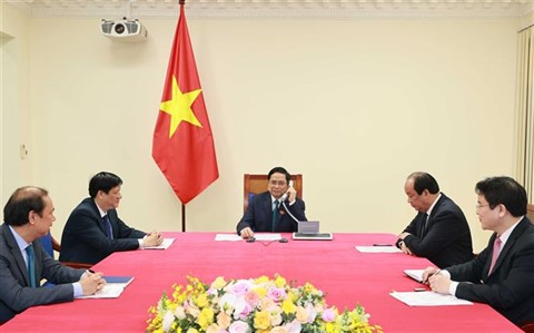 Pham Minh Chinh a affirmé le souhait de travailler en étroite collaboration avec le Premier ministre Samdech Techo Hun Sen dans l’avenir pour approfondir les relations de bon voisinage et d’amitié traditionnelle et la coopération intégrale entre les deux pays et les deux gouvernements. Il a exprimé sa conviction que le gouvernement et le peuple cambodgiens, sous la direction du Premier ministre Hun Sen, repousseront bientôt la pandémie de COVID-19 et continueront à réaliser de nombreuses nouvelles réalisations. Il est convenu de charger les ministères de la Santé des deux pays d'échanger leurs expériences sur la prévention et le contrôle de la pandémie.