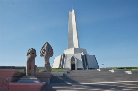 | Le monument "Gagnant-gagnant", un symbole de la paix du Royaume cambodgien. Photo: VNA/CVN |
