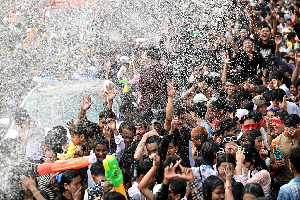 | Une foule compacte participant à la fête Sangkran au Cambodge. |