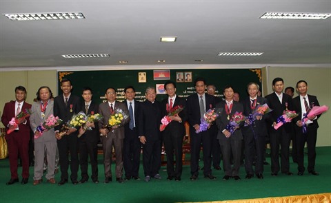 | Cérémonie de remise des distinctions honorifiques du Cambodge aux diplomates et aux journalistes vietnamiens, le 2 janvier à Phnom Penh. |
