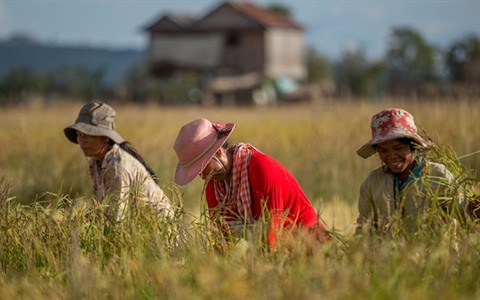 | Des riziculteurs cambodgiens. |