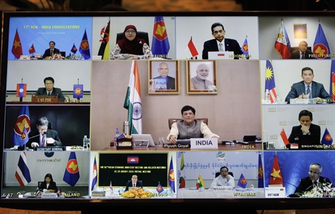 | La 17e réunion de consultation en ligne entre les ministres de l'Économie de l'ASEAN et le partenariat extérieur indien, le 29 août, dans le cadre 52e réunion des ministres de l'Économie de l'ASEAN (AEM-52). |